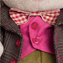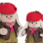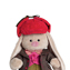 Зайка в оригинальном комплекте – вельветовые брючки оливкового цвета, яркий бархатистый жилетик цвета фуксии на подкладе из сатина, классический пиджачок в плотных коричневых тонах в клетку «гленчек» и галстук-бабочка в мелкую клеточку. На голове у Зайки вельветовая кепка цвета сочной клюквы с атласным бантиком зелёного цвета.
