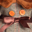 На Зайке респектабельное шерстяное платье в клетку “гленчек” классической расцветки имбирного пряника. Платье оформлено бархатным воротничком и манжетами цвета корицы. Также на платье тонкий поясок из атласной ленты шоколадного цвета и две оранжевые пуговки на лифе. В комплекте – объёмная вельветовая кепка с козырьком песочного цвета и помпоном из бархата.у.