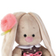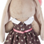 Милое платьице кофейного цвета в горох с белоснежным круглым воротничком из сатина. По талии платье украшено пояском с бантиком из розовой атласной ленты. На ушке нежно-розовый цветок из тончайшей органзы.