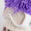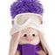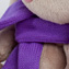 Белая шапка из вязаного трикотажа с объёмным сиреневым помпоном. На шапке горнолыжные очки на оригинальной резинке с фирменным принтом. В комплекте – шарф из плотного трикотажа сиреневого цвета.