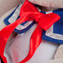 Белоснежное платье в морском стиле из плотного хлопка с лёгкой, прозрачной оборочкой по низу. Платье украшает синий воротничок и алый бант из атласной ленты. В комплекте – берет из белого флиса с красным помпоном из толстых шерстяных ниток.