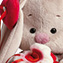 Коробочка-сюрпризница из алого фетра украшенная объёмным цветком из белого и красного флиса. На ушке красное бархатное сердечко с белой пуговкой и атласной лентой.