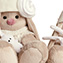 Белый свитер из вязаного трикотажа. В комплекте - белая шапочка из плотного трикотажа с пушистым помпоном, расшитая жемчужными бусинками и украшенная белоснежным цветком из сеточки и атласа. Зайчик-игрушка из белого бархата.