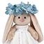 Очень нежный образ Зайки в стиле «Прованс». Зайка в беленьком х/б платьице, расшитом кружевами, как будто связанными бабушкой. На голове у Зайки милый веночек, сделанный вручную из голубых цветов.