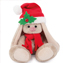 Зайка в рождественском колпачке из алого флиса с белым отворотом и помпоном из белого софта. Колпачок украшает декоративный остролист из флиса с красной пуговкой. Также на Зайке очень мягкий шарфик из флиса.