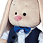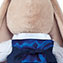 Свободный брючный комплект, состоящий из - поплиновых брючек цвета взбитой черники, классического жилета плотного, синего цвета и тонкой хлопковой рубашечки бледно-голубого цвета в нежную полосочку. Декор – галстук-бабочка из атласа цвета электрик.