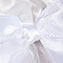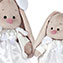 Нежное пальтишко молочного цвета из жаккардового хлопка с блестящим орнаментом в тон. Пальто украшено белоснежным меховым воротничком. В комплекте – нарядное платье из плотного атласа цвета экрю, сверху по юбочке, украшенное тонкой сеточкой и белым атласным бантиком. Декор на ушке – белое сердечко из софта.