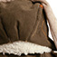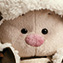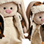 Курточка-пилот из искусственной замши цвета «хаки» на меху с оригинальными пуговицами под кость. В комплекте – лётный шлем с защитными очками и комбинезончик из бежевого вельвета.