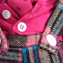 Весёлый костюмчик для мальчика в малиновой гамме. В комплекте - штанишки на лямочках из мягкой фланели в клеточку, нарядная рубашка из яркого поплина с белым воротничком и манжетами и украшение в виде шейного галстучка из тонкой х/б ткани в горошек.