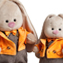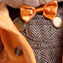 Элегантный костюмчик, состоящий из шерстяного комбинезончика с карманчиком и бархатного пиджачка цвета облепихи. Комплект украшает галстук-бабочка из оранжевого атласа.