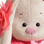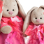 Нежнейший комплект цвета спелой земляники. Платье из хлопкового поплина, украшенное коралловой сеточкой, воланом спереди и розовым бантиком из органзы. Также в комплекте - коротенькая курточка из непромокаемой ткани в горошек. Декор - на ушко нежно-коралловый цветок и зайка-игрушка из розового бархата с атласным бантиком.